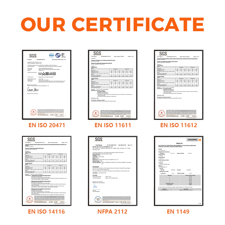 Standard:EN 11611, EN 11612, EN 1149, NFPA 2112, Arc Rated CAT 1