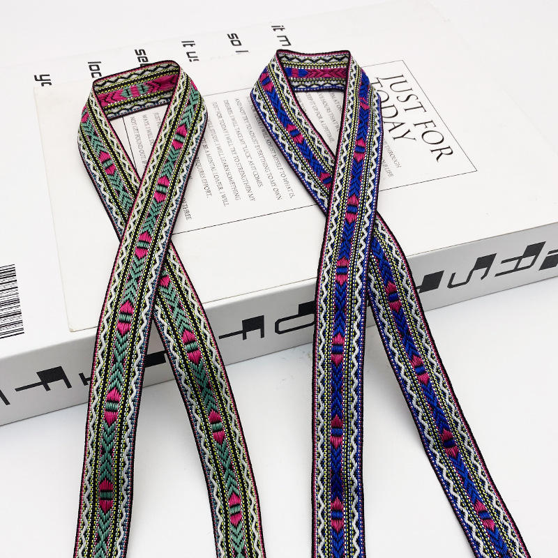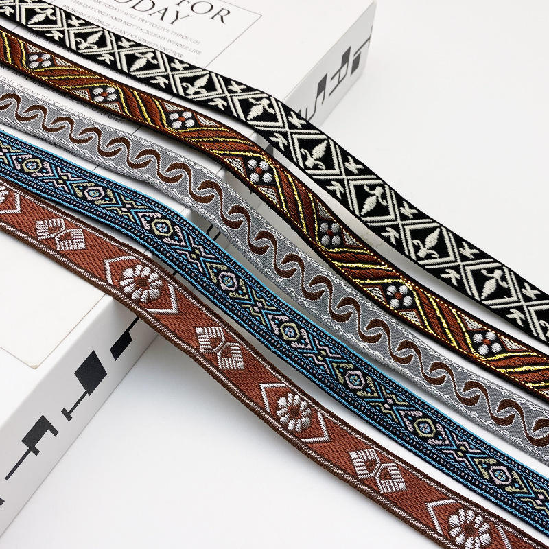 Vente en gros de sangles brodées jacquard personnalisées, textile de maison, garniture de sangle tressée ethnique pour sac/vêtement/Homedeco