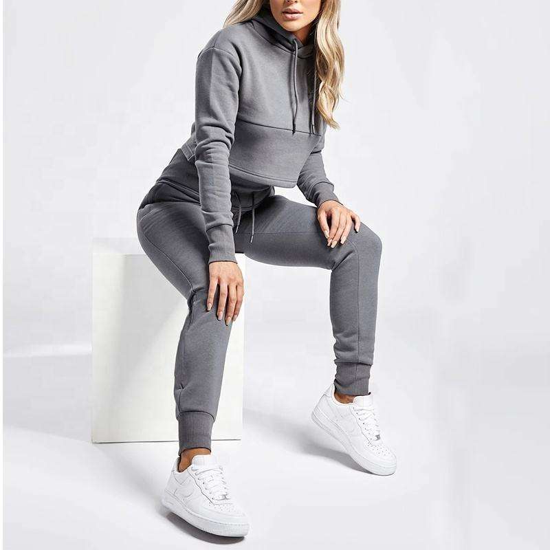 Vente en gros Personnalisé Jogger Jumper Gym Workout Crop Top XL Unisexe Femme Ensembles Deux Pièces Pantalon Survêtement Surdimensionné Logo