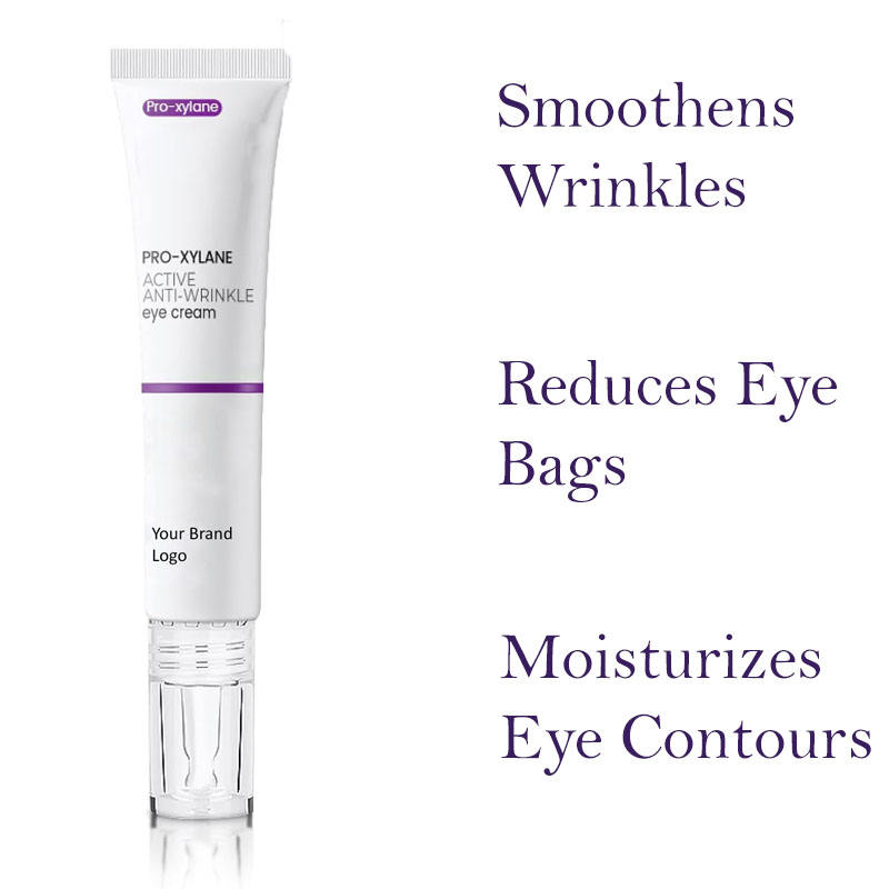 Crème contour des yeux anti-âge à marque personnalisée en gros peptide Pro-Xylane à l'acide hyaluronique réduit les cernes poches pour les yeux OEM/ODM