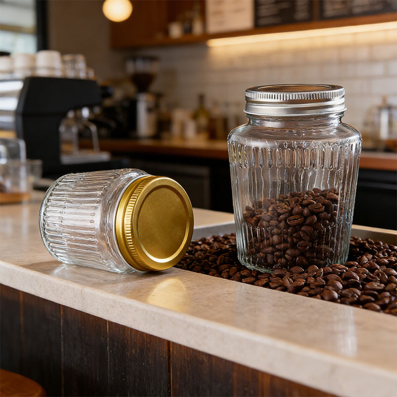 Vente en gros de pots en verre pour aliments avec étiquettes personnalisées, ronds, 150 ml, 250 ml, 380 ml, 500 ml, avec couvercles