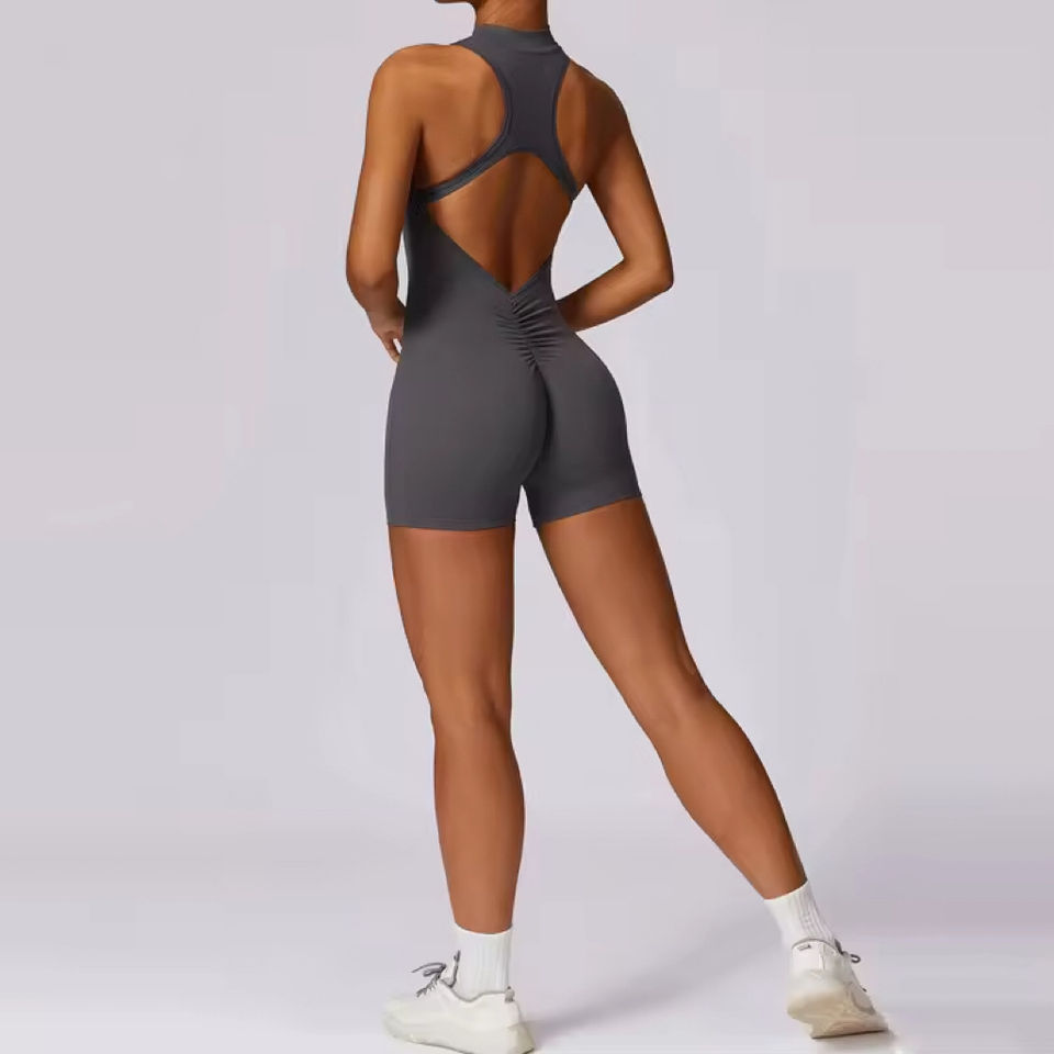 Vente en gros de shorts de yoga pour femmes personnalisés avec fermeture à glissière sur le devant Combinaison de yoga avec fermeture à glissière