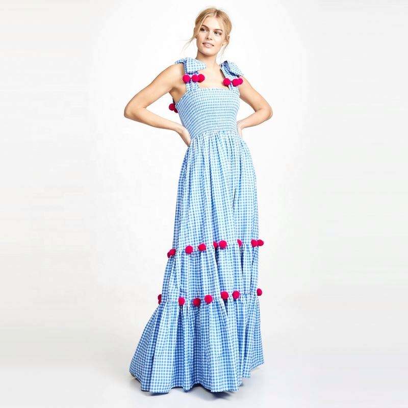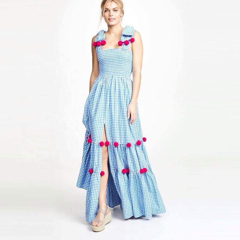 Robes maxi pour femmes en gros, sur mesure, grande taille, bohème, plage, élégantes, faites à la main, en coton teinté en fil, à carreaux, fendues, décontractées