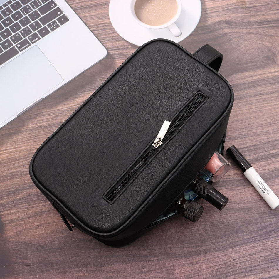 Sac de toilette portable en cuir grande capacité, personnalisé, imperméable, pour hommes et femmes, à prix bas.