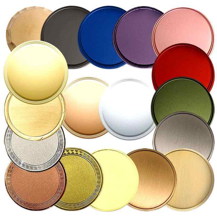 Vente en gros d'embases de pièces vierges gravables au laser et en émail personnalisées médaille souvenir de finition de placage difficile colorée mate vintage brillante