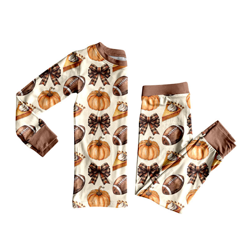 Wholesale Custom Little Girl Pink Christmas trees Print Long Sleeve Clothing Set Fall pajamas for Kids