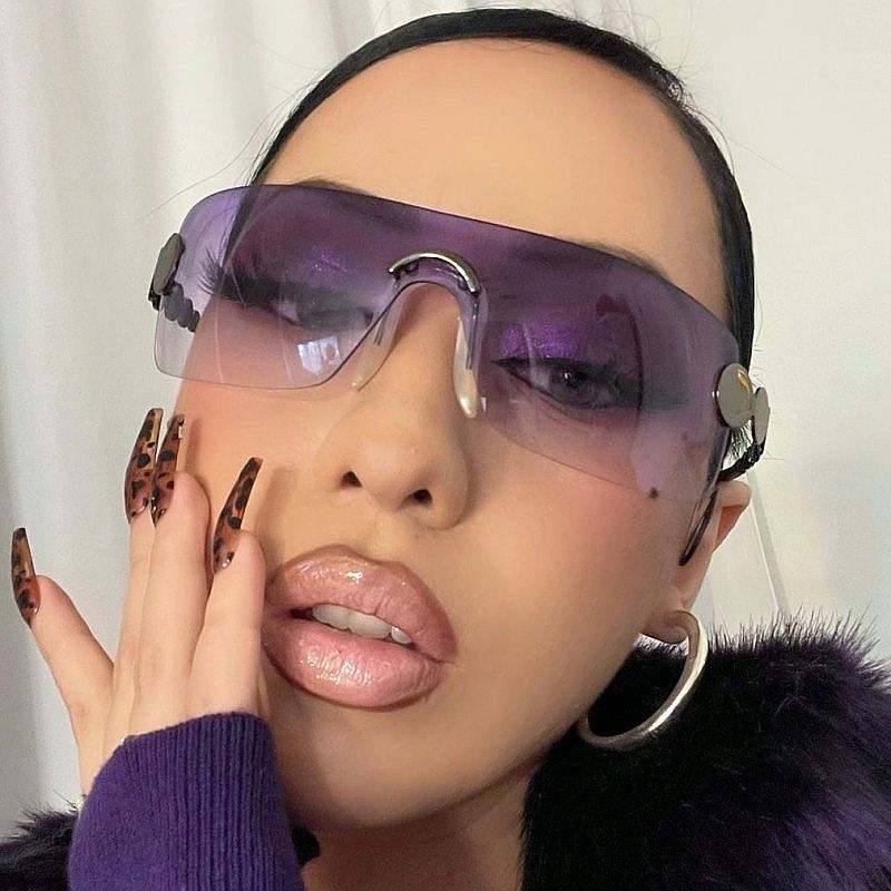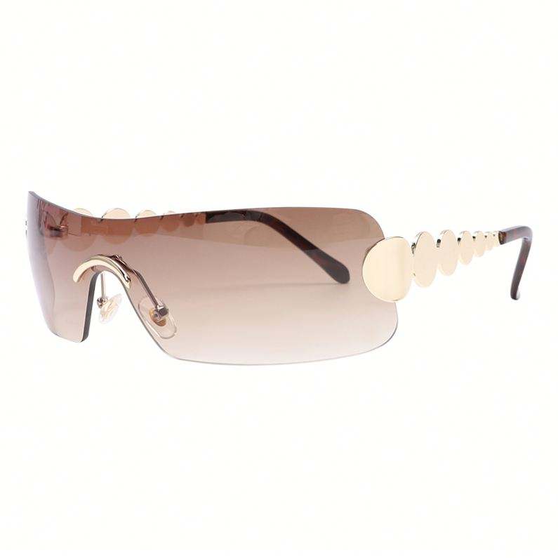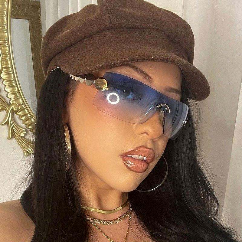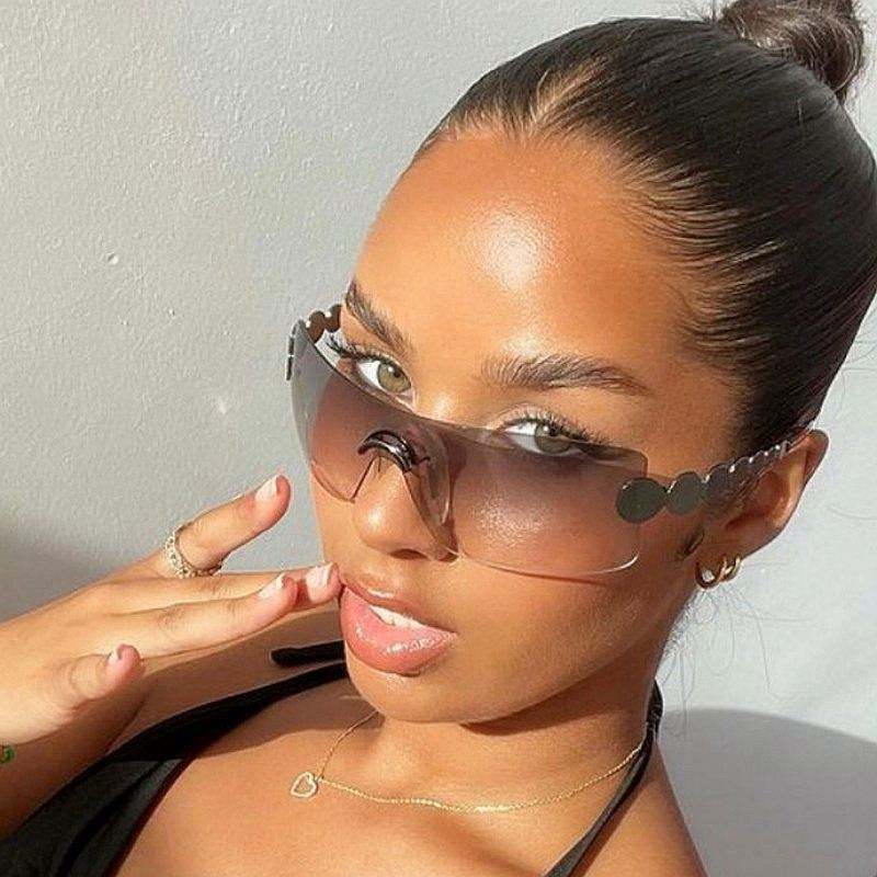 Vente en gros de lunettes de soleil vintage Y2K personnalisées avec logo, sans monture, à verres monobloc, pour femmes