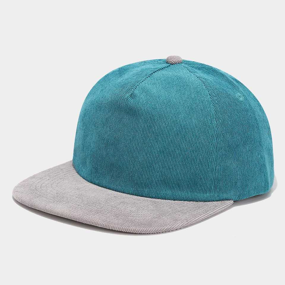Vente en gros Logo personnalisé Casquette de baseball à bord plat 5 panneaux Casquettes à pression personnalisées en velours côtelé