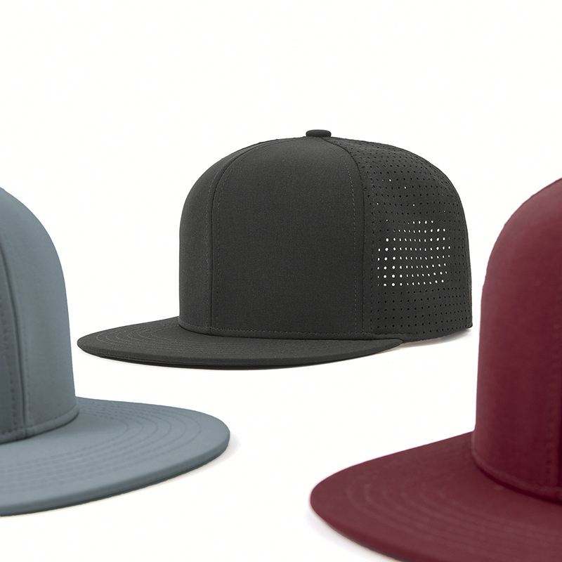 Casquette Snapback classique perforée à 6 panneaux non structurée, vierge, avec logo personnalisé et découpe laser, vente en gros