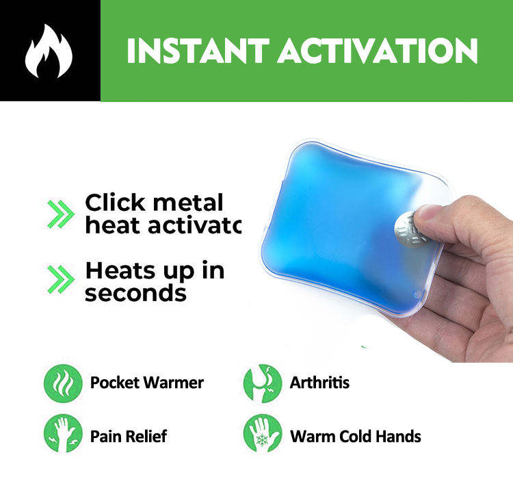 Vente en gros de packs de glace et de chaleur en gel à clic magique, personnalisés avec logo, certifiés CE, écologiques, durables, petits, pour la physiothérapie, le camping, les blessures sportives