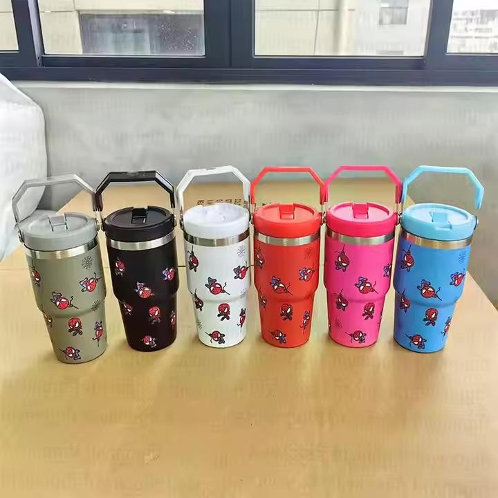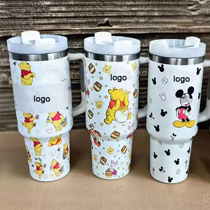 Gobelet isotherme portable en acier inoxydable 304 de 40 oz avec poignée, personnalisé avec logo, motif dessin animé, pour l'extérieur