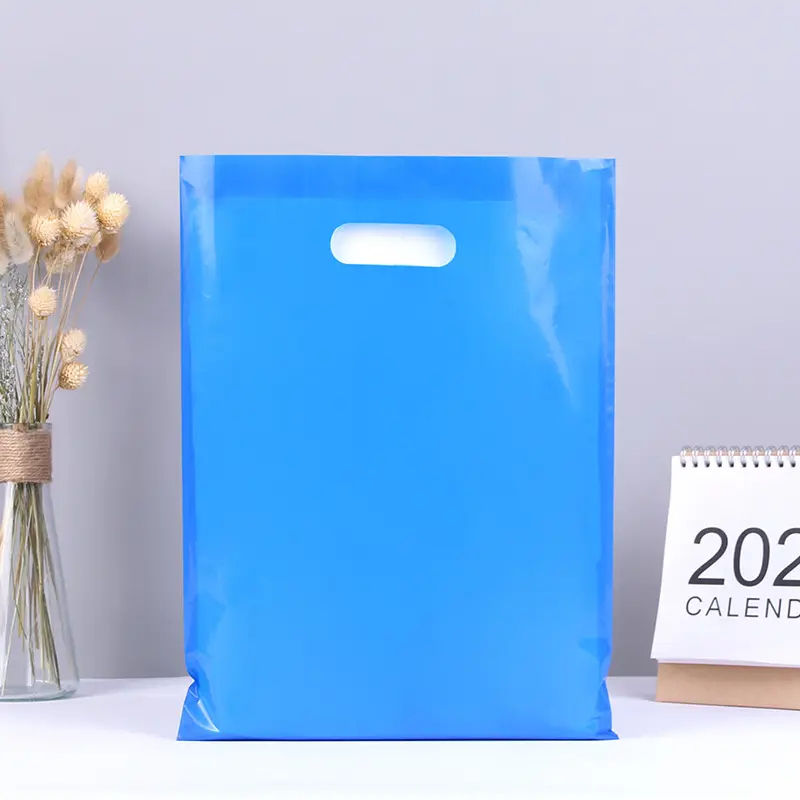 Vente en gros Sac à provisions avec poignée en plastique personnalisé avec logo personnalisé Sacs en plastique HDPE avec poignée de votre logo