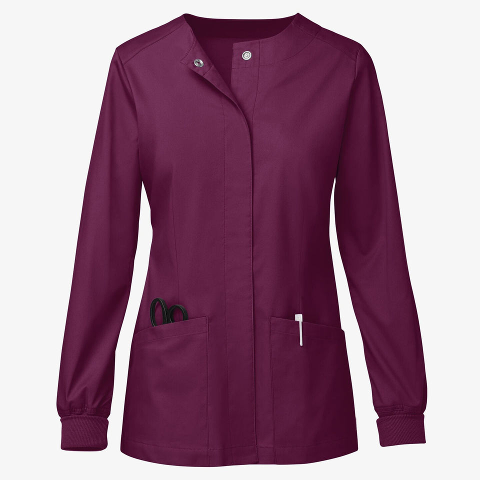 Blousons médicaux personnalisés avec logo imprimé ou brodé, fermeture à boutons-pression, manches longues, poignets côtelés, commandes en gros OEM