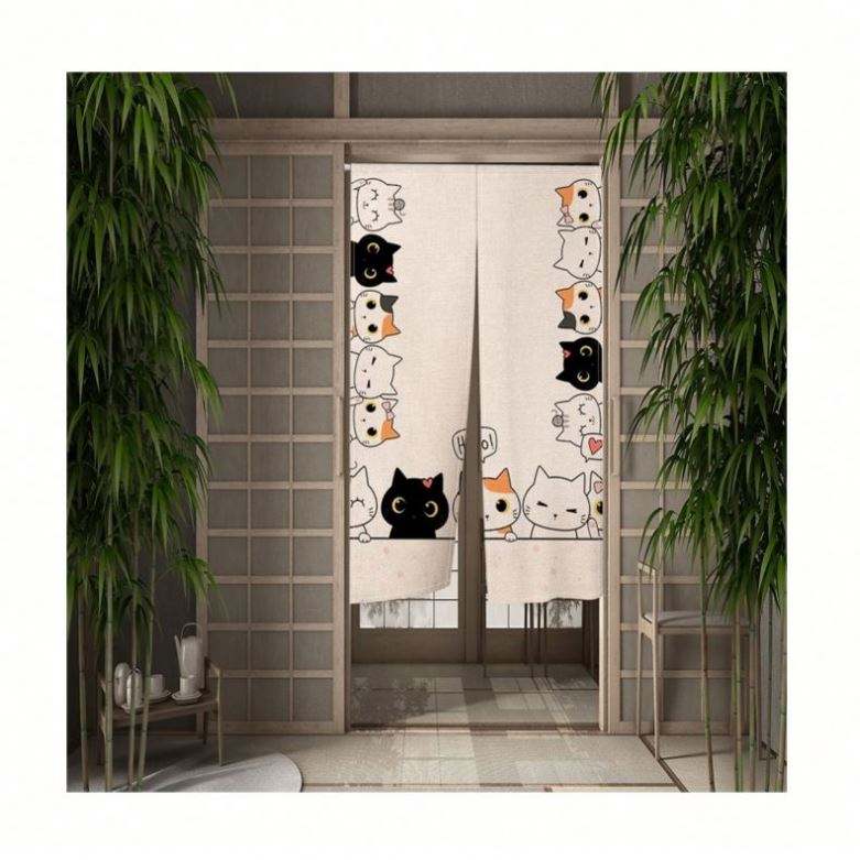 Rideau de porte coulissante de cuisine en coton et lin, style japonais et coréen, sur mesure avec logo personnalisé, toutes tailles, vente en gros