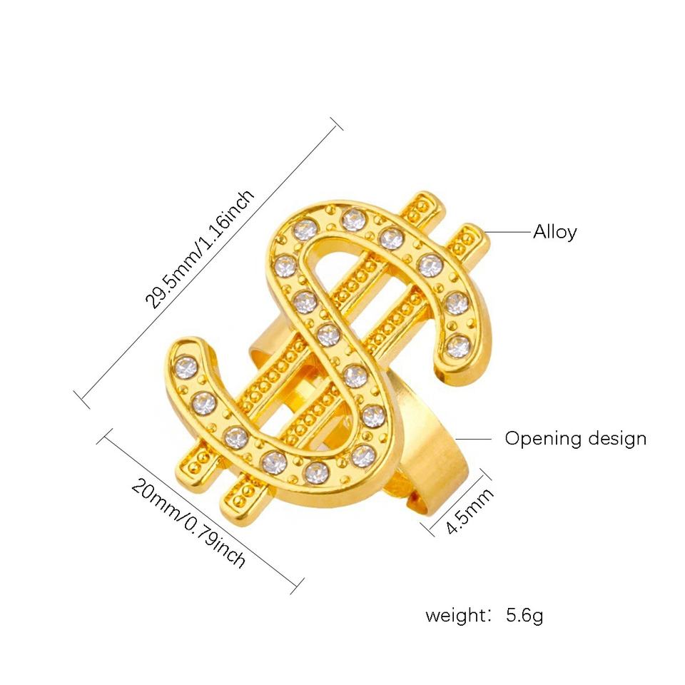 Bague Dollar Personnalisée en Gros avec Logo, Strass, Symbole Monétaire, Plaqué Or/Argent, Bande Réglable, pour Fêtes, Magasins, Clubs, Événements, OEM