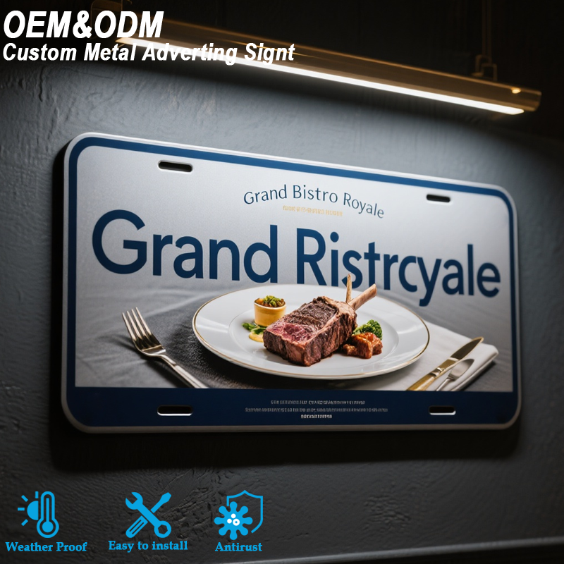 Plaque d'immatriculation décorative en aluminium vierge avec logo personnalisé en relief pour commande en gros
