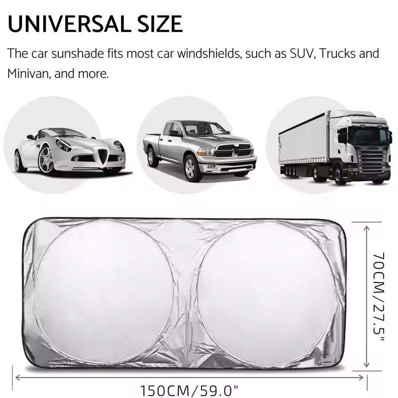 Pare-soleil pliable personnalisé avec logo pour pare-brise avant, idéal pour promotion de concessionnaires et cadeaux d'affaires, pare-soleil de voiture double cercle