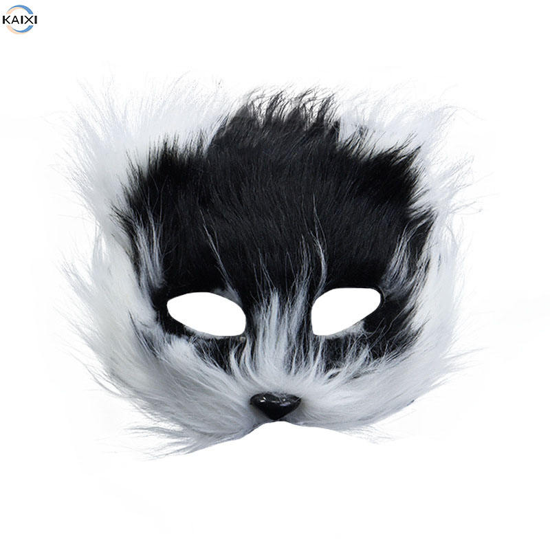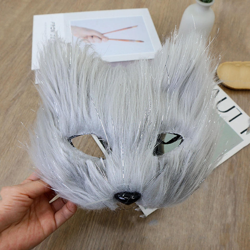 Masque en peluche en fourrure de renard avec logo personnalisé en gros, masque de chat demi-visage, masque d'animal en plastique pour fête, jeu de rôle, déguisement