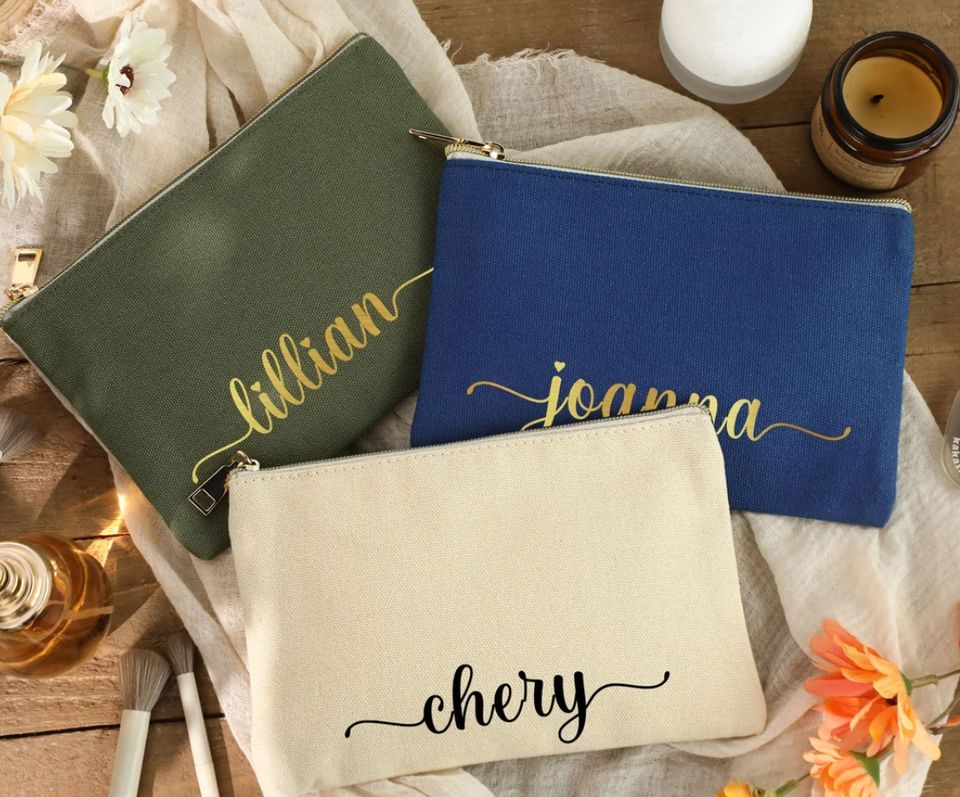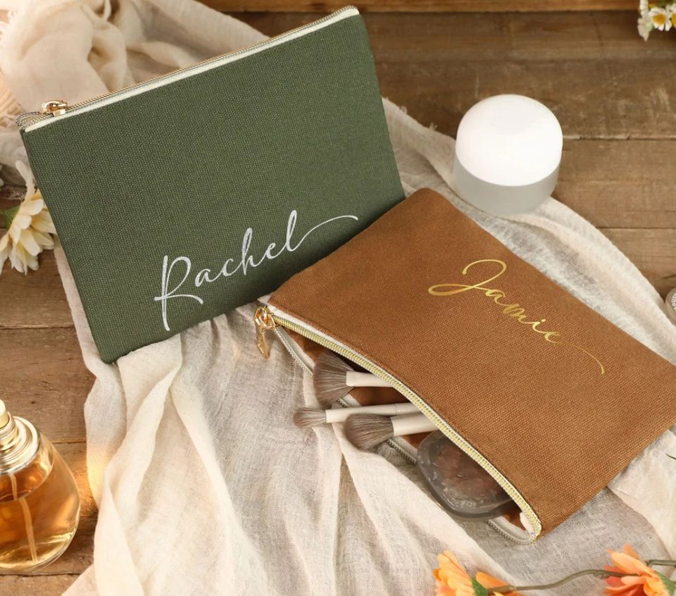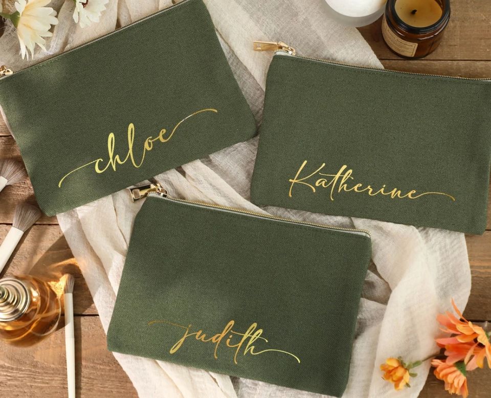 Pochette cosmétique en toile de coton avec fermeture éclair, style simple, estampage doré personnalisé, motif géométrique, petite pochette tendance avec lettre, vente en gros