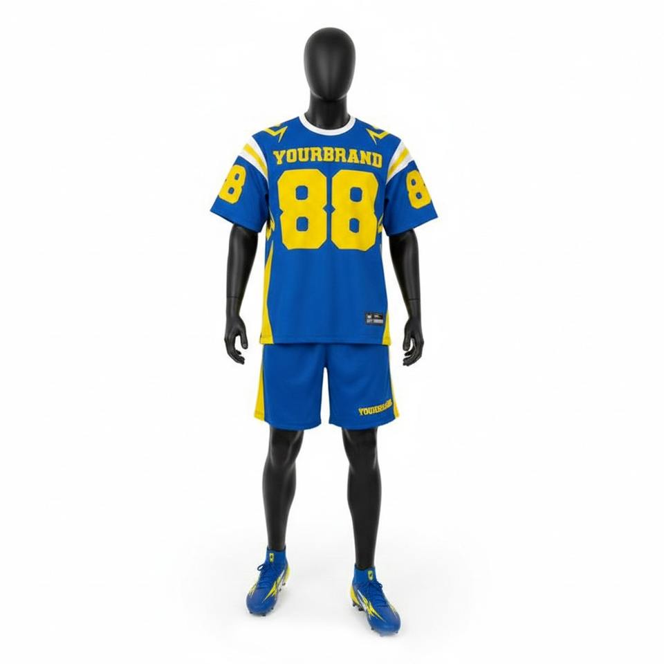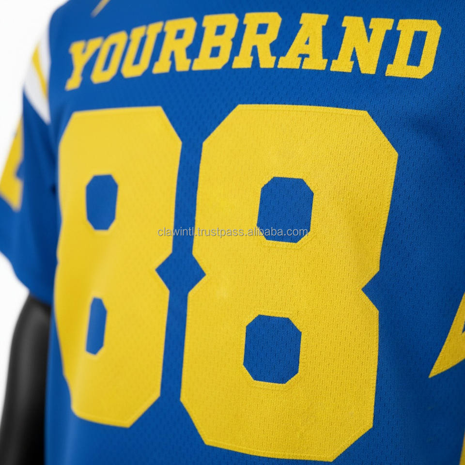 Maillot de football américain personnalisé avec logo dégradé, grande taille, marron et or, en maille respirante, anti-humidité et antibactérien, vente en gros