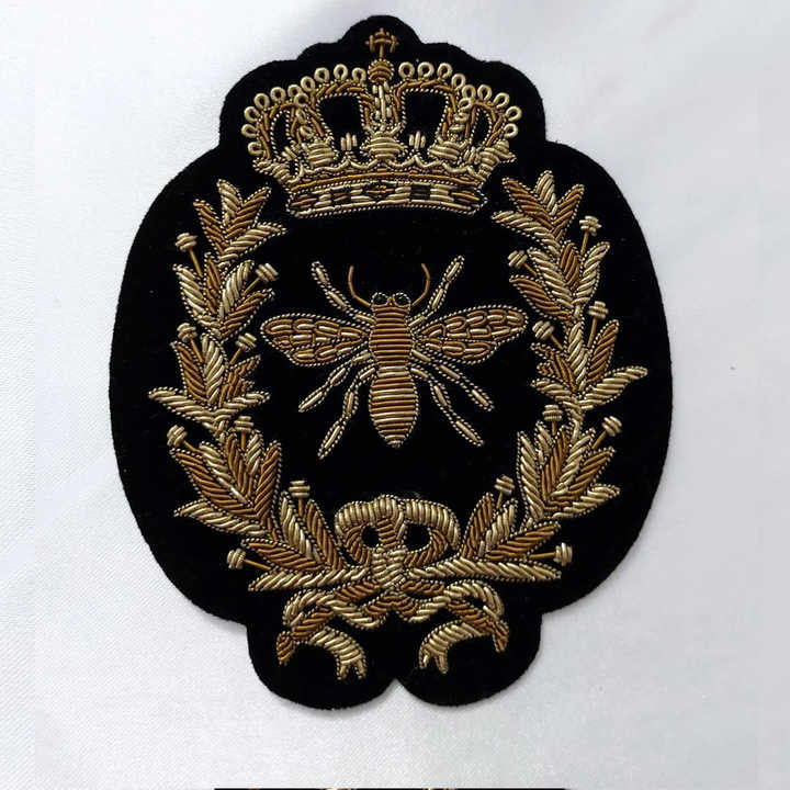 Vente en gros de écussons en soie avec logo personnalisé, brodés à la main, écussons tendance en tissu sergé, emballage personnalisé