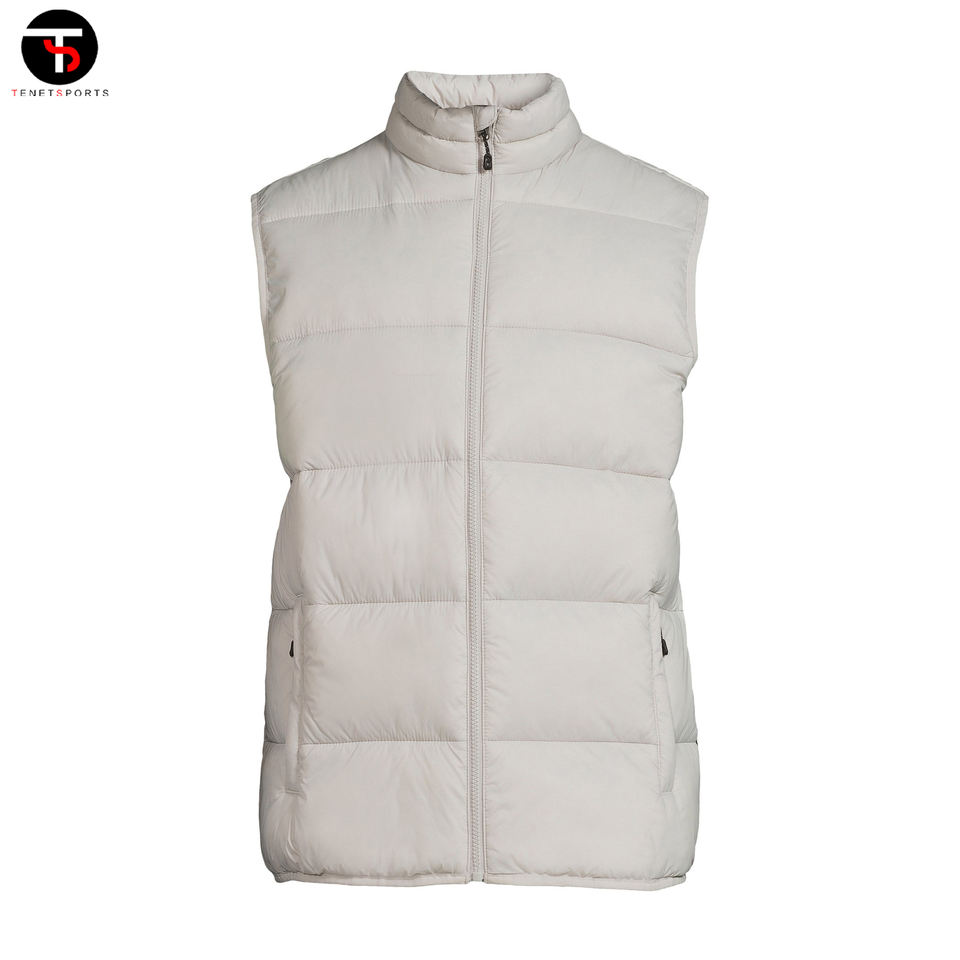 Vente en gros de gilet matelassé rembourré pour hommes avec logo personnalisé col Mandarin couleur unie service de vêtements d'extérieur coupe-vent produit tendance