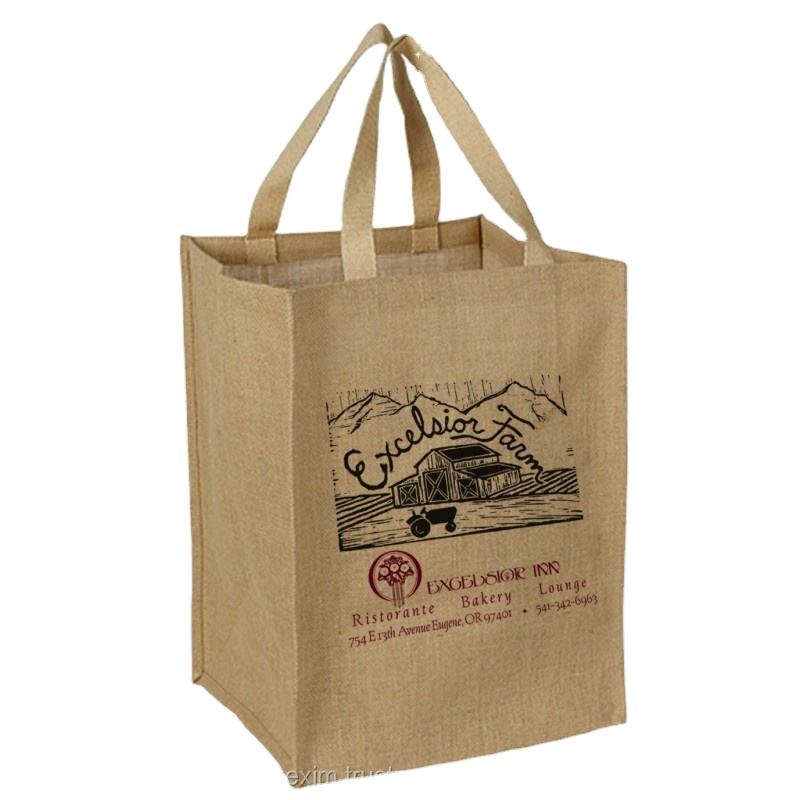 Vente en gros Logo personnalisé Fourre-tout en toile de jute écologique blanc naturel Sac à provisions en jute d'épicerie