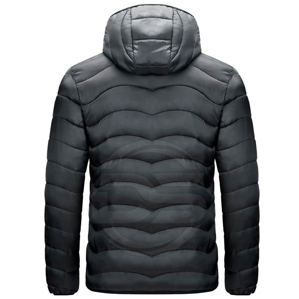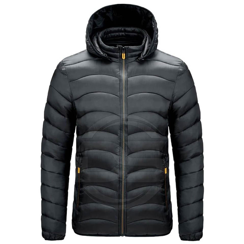 Vente en gros Veste matelassée élégante pour hommes, logo personnalisé, col à capuche, rue principale, hiver, service OEM, toile polyester imperméable