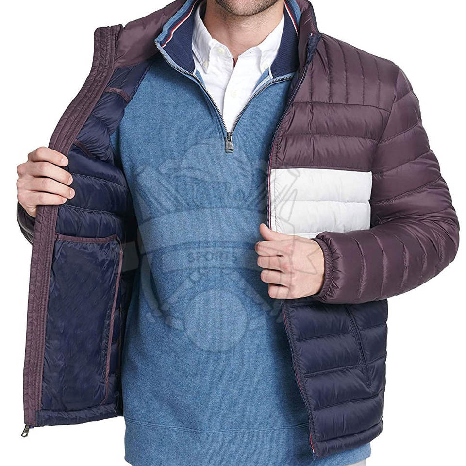 Vente en gros Veste matelassée coupe-vent pour homme avec logo personnalisé Col à capuche en toile Utilisation hivernale
