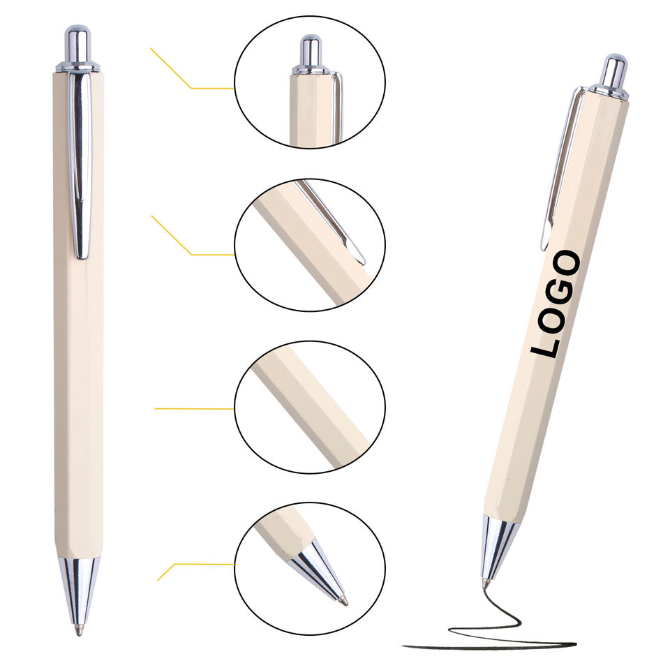 Custom Logo Printed Metal Hexagonal Click Ballpoint Pen