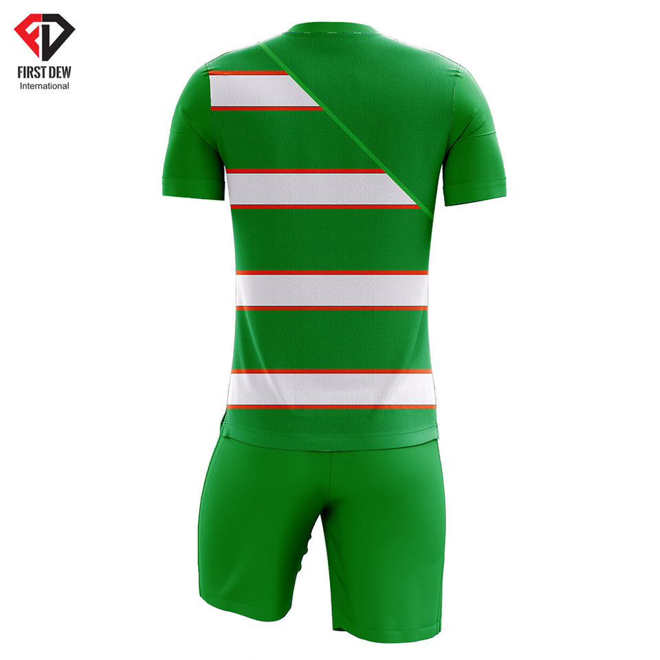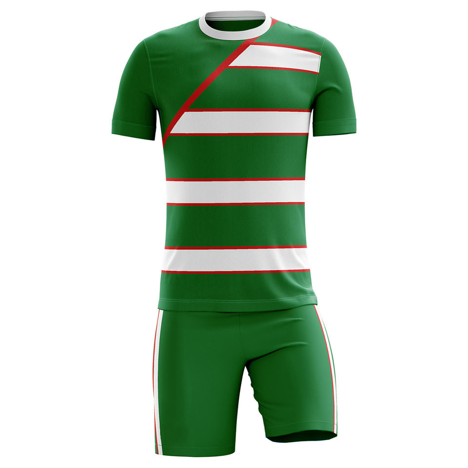 Gros Logo Personnalisé Imprimé Élégant Nouveau Design Vert Sublimation Manches Courtes Col Rond 100% Polyester Ensemble Uniforme De Football Hommes