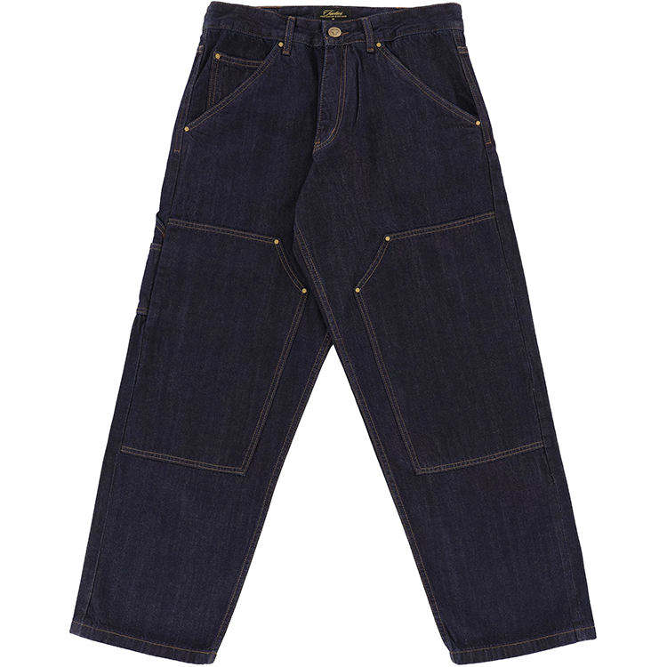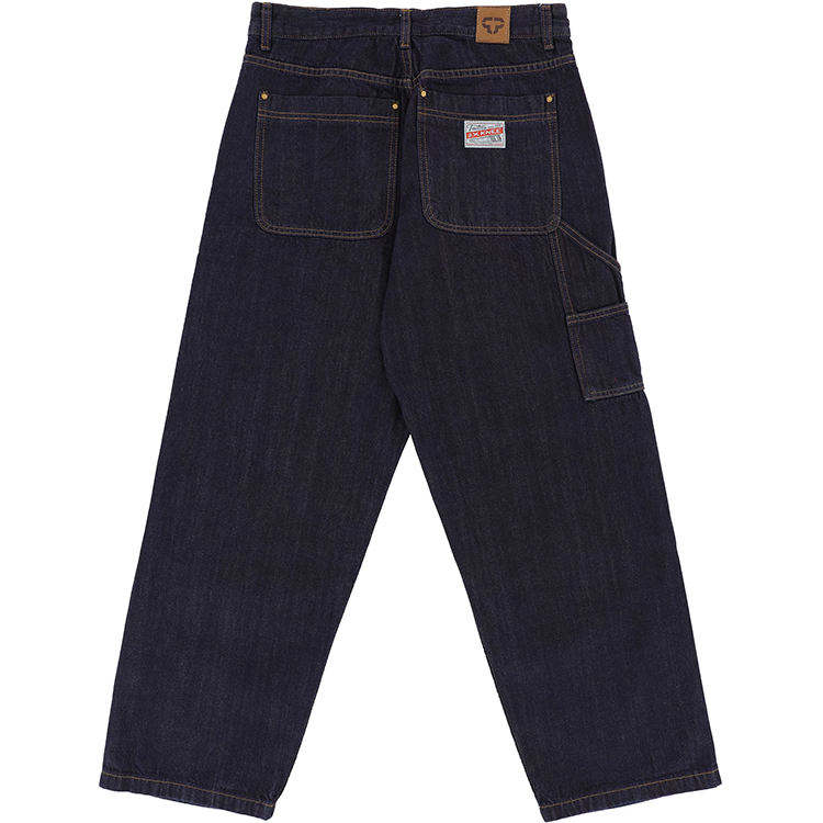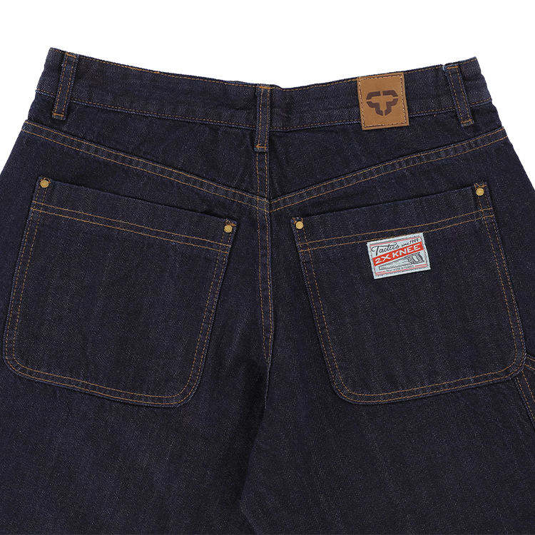 Vente en gros : Jean en denim brut pour homme, coupe bootcut, coupe ample, grandes tailles, avec logo personnalisé, patchs à rivets, double genouillère, style mode, skate, décontracté, baggy, charpentier