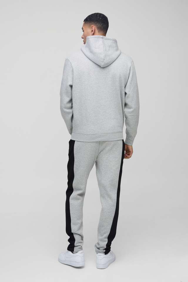 Vente en gros de vêtements de sport pour hommes de coupe régulière, survêtement à capuche avec logo personnalisé, ensemble de 2 pièces pour l'entraînement d'hiver avec bloc de couleur unie