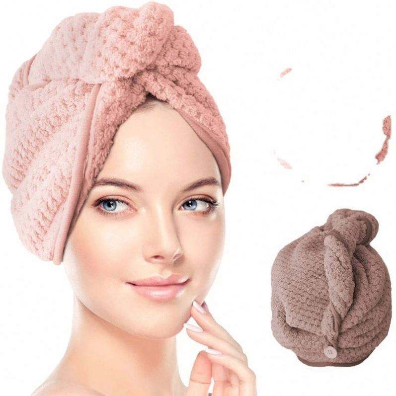 Bonnet de bain en satin personnalisé avec logo, serviette en microfibre enveloppante et boutons pour femme, idéal pour rafraîchir après la douche