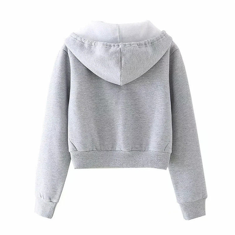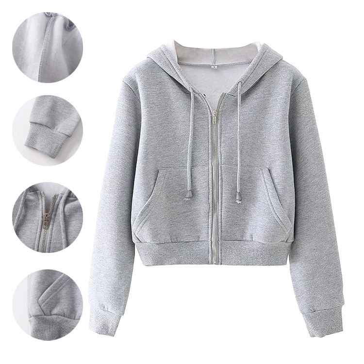 Ventes en gros de sweat-shirts à capuche décontractés avec logo personnalisé, impression sur le devant, fermeture éclair, sweat-shirts de sport courts, survêtement, hauts de jogging, crop top pour femmes