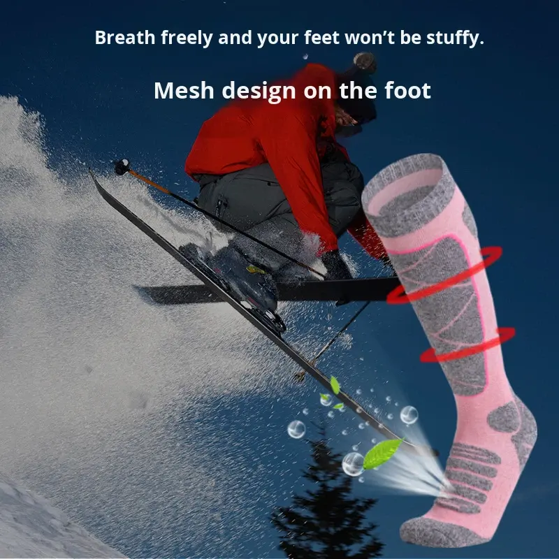 Chaussettes de ski personnalisées en gros avec logo, chaussettes de conception, chaussettes de camping, de ski, de plein air, en coton épais, chaussettes de randonnée hautes, chaussettes de sport