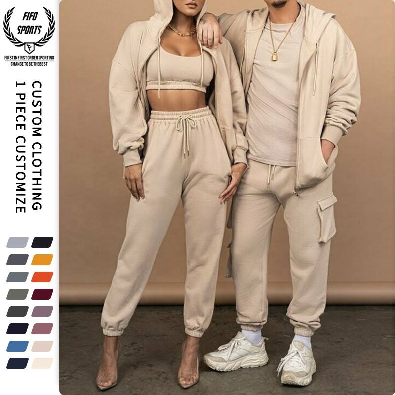 Vente en gros Logo personnalisé Survêtement à capuche unisexe vierge décontracté de couleur unie Surdimensionné Respirant Jogging avec vente en gros