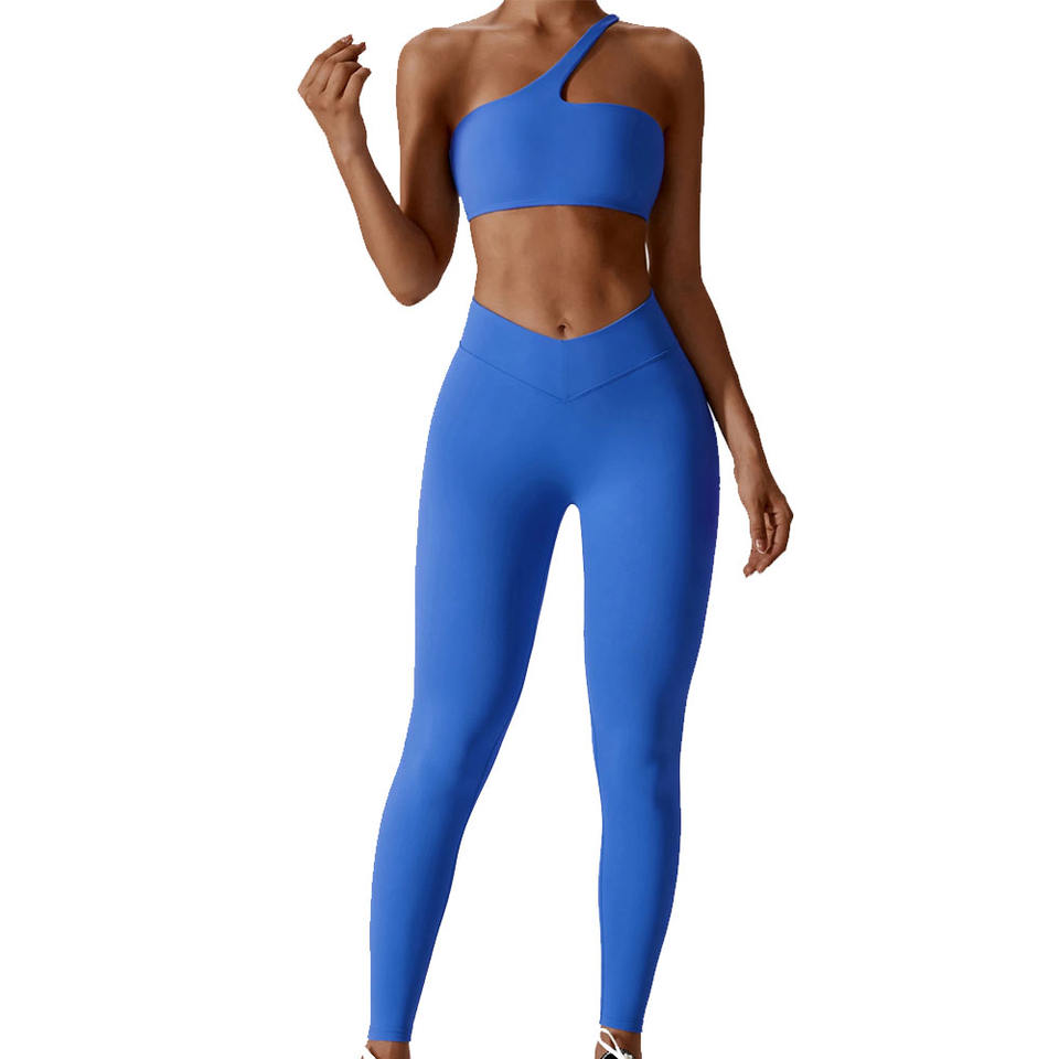 Ensemble de yoga pour femme grande taille, personnalisé avec logo, soutien-gorge de sport asymétrique et leggings taille mi-haute sans couture pour la gym et le fitness