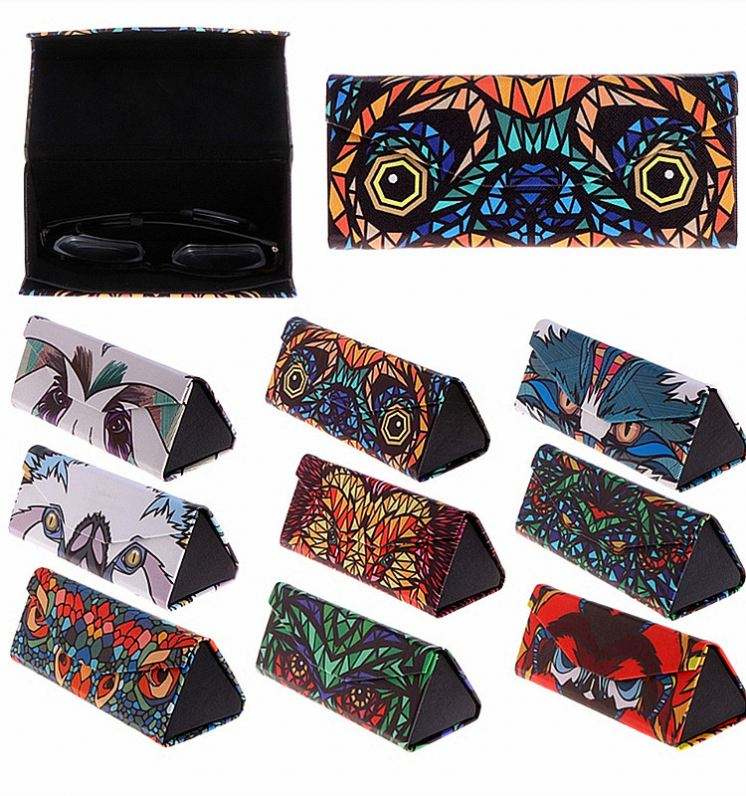 Étui à lunettes pliable triangulaire personnalisé avec logo, motif animal de dessin animé, pour lunettes de vue et de soleil, vente en gros