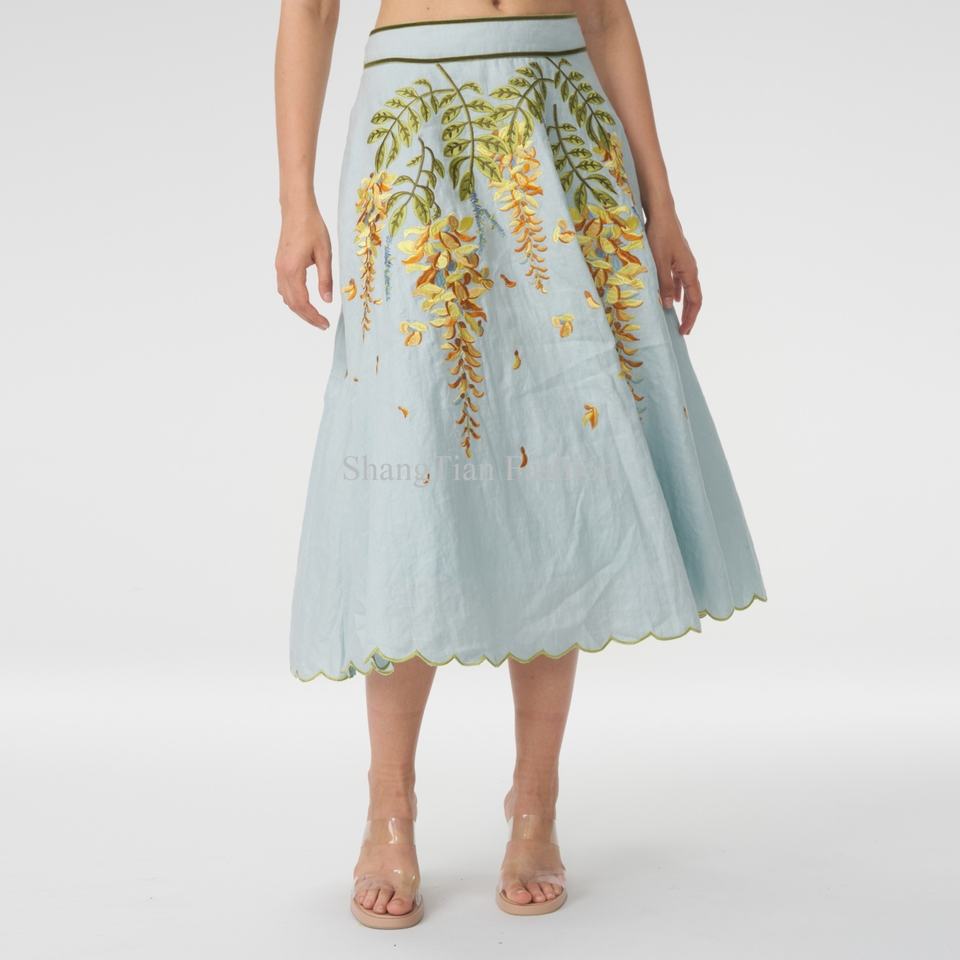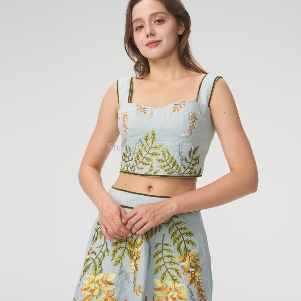 Ensemble deux pièces personnalisé avec logo brodé, haut court et jupe midi, ensemble d'été pour femmes