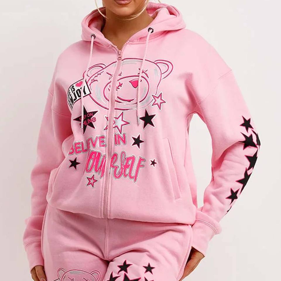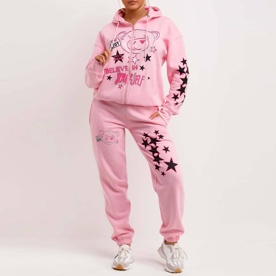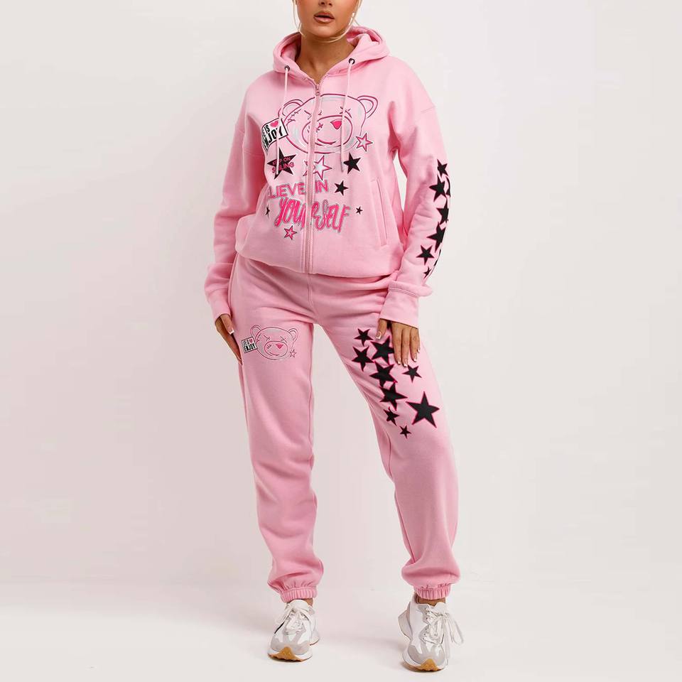 Wholesale Custom Logo Women 100% Cotton Training Track Suit Solid Jogging Sweat Suits with Winter Collection Patches For Girls