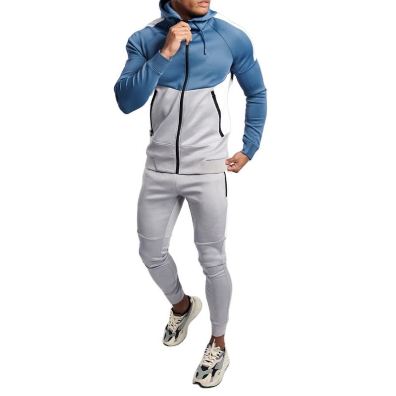 Ensemble de survêtements unisexes d'hiver pour le sport, vente en gros, séchage rapide, imprimé contrastant, 2 pièces, logo personnalisé, avec cordon de serrage, à capuche, grandes tailles