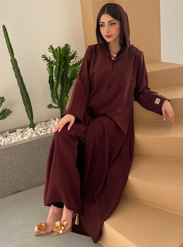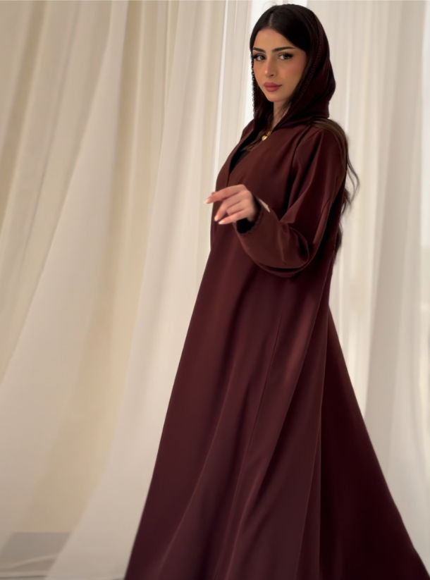 Wholesale Custom Luxury Stylish Brown Silk Anti-Wrinkle Handmade Abaya Matching Headscarf Long Dubai Islamic Clothing Adults