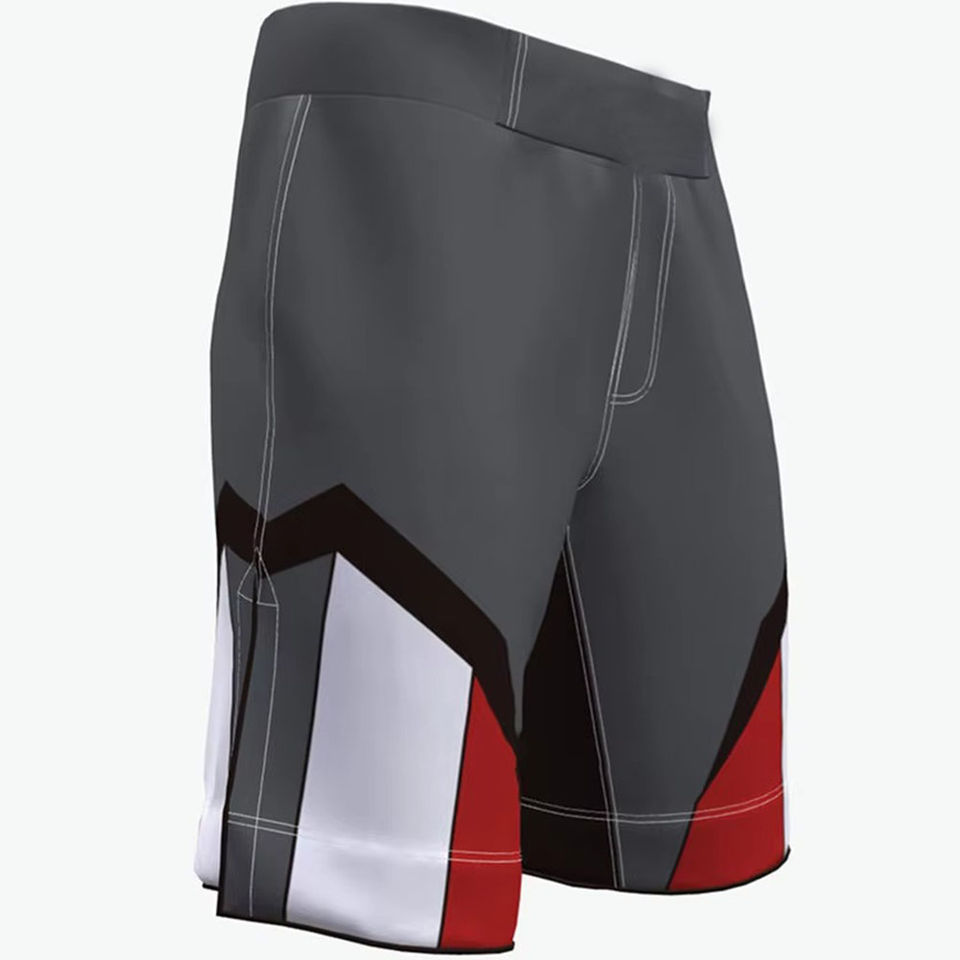 Shorts de MMA personnalisés en gros, 100% polyester, logo sur le devant, séchage rapide, respirant, extensible, shorts de MMA pour hommes