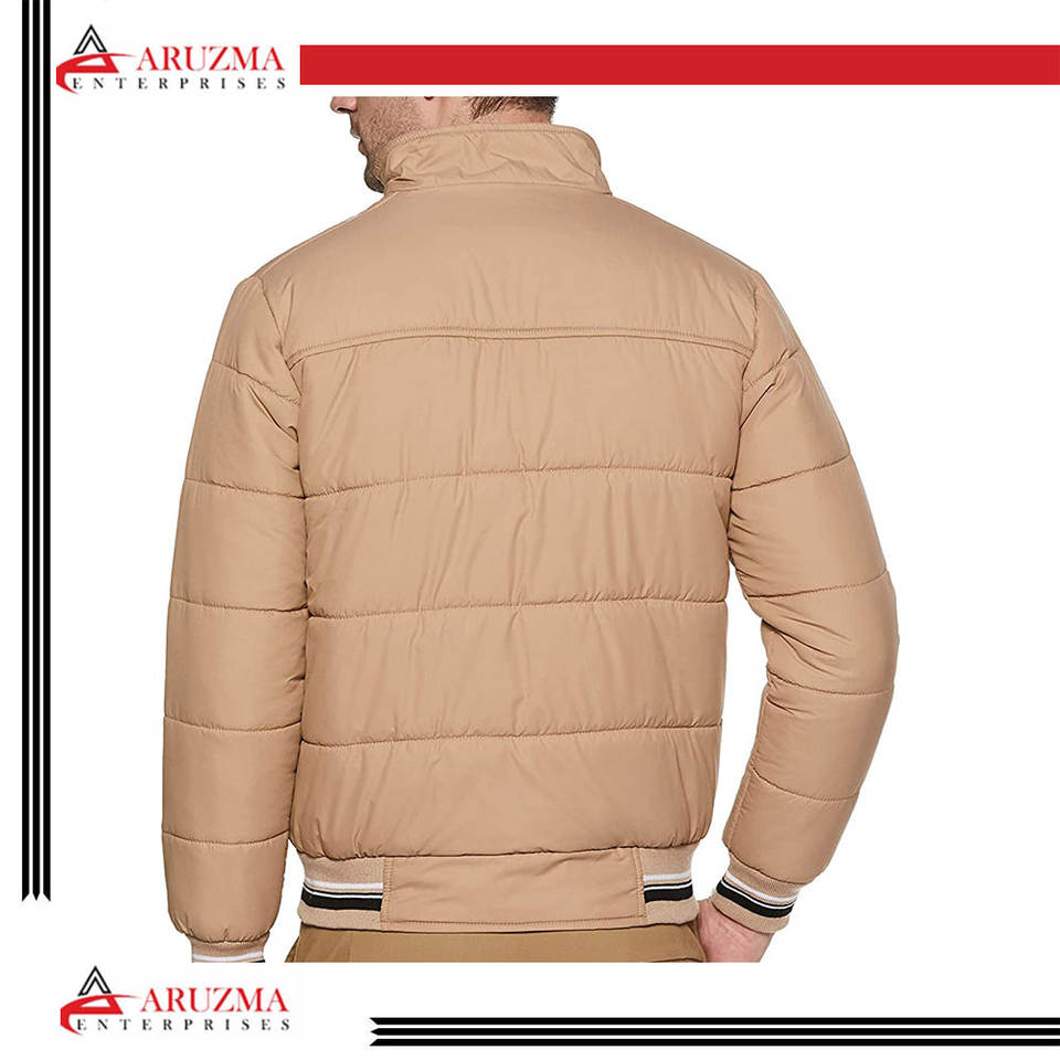 Blouson aviateur en satin pour hommes fait sur mesure en gros style décontracté mince avec col montant et fermeture à glissière épaisse pour l'hiver