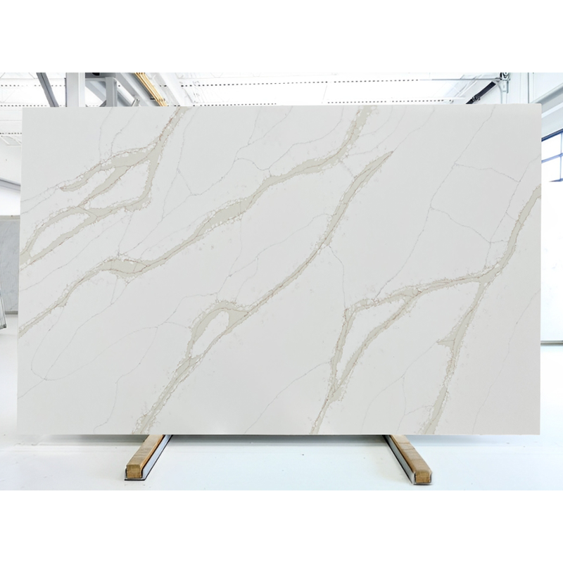 Vente en gros de dalles de pierre de quartz artificiel au design en marbre personnalisé Calacatta plan vasque blanc comptoirs de cuisine mur d'armoire