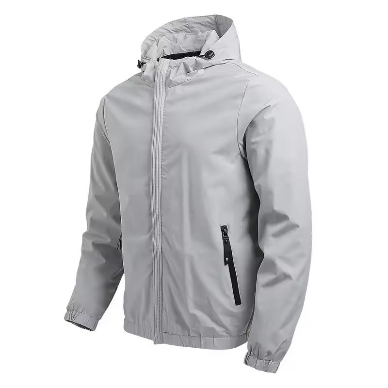 Veste coupe-vent zippée pour homme, personnalisable en gros, légère, imperméable, respirante, décontractée, à capuche, grande taille 5XL, pour le sport en extérieur