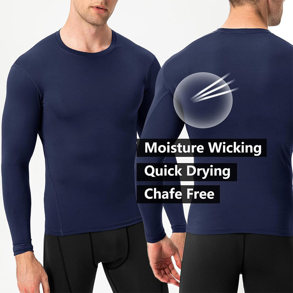 Vente en gros de chemise de fitness imprimée à manches longues et compression pour homme, légère, avec couche de base pour entraînement, entraînement