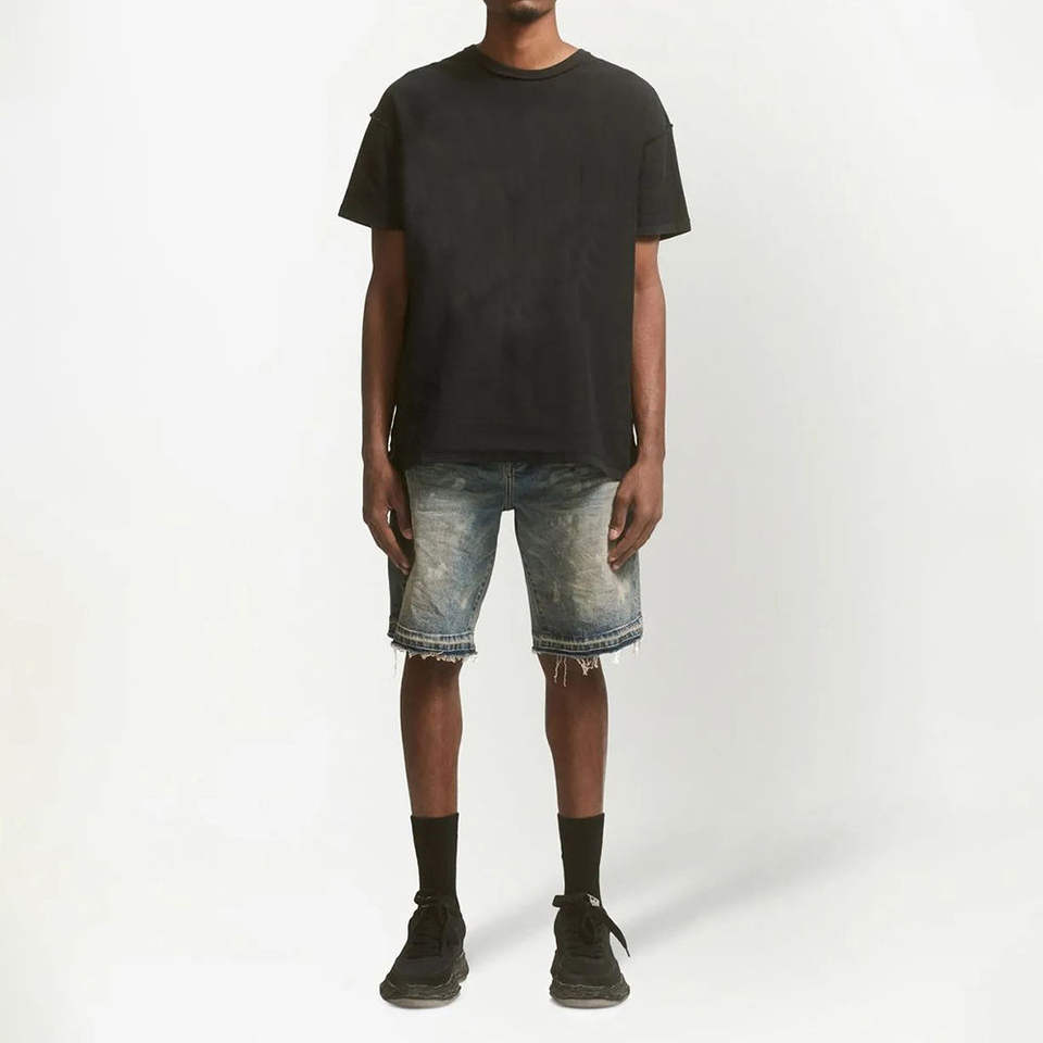 Jeans pour hommes en gros, sur mesure, taille haute, denim uni teint, déchiré, court, fermeture éclair, tendance, vente chaude, jeans courts pour hommes