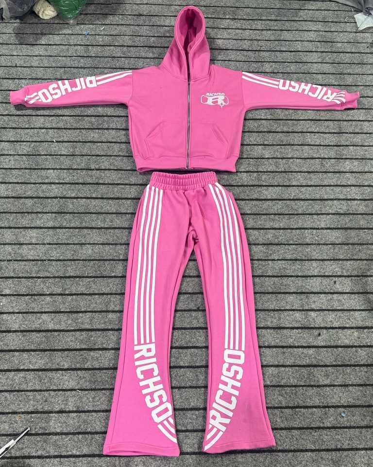 Ensemble survêtement homme personnalisé en gros : sweat à capuche zippé et pantalon de jogging en molleton bouclé, style streetwear rayé